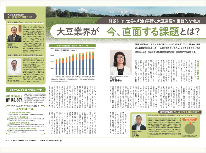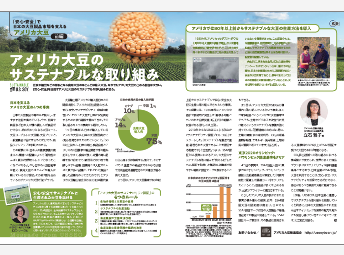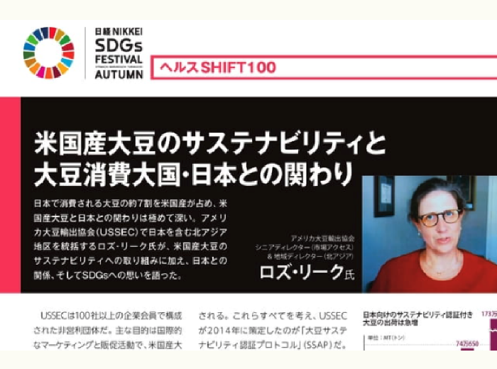 | 2016年10月 | 「さらなる成長へ女性の一層の活躍を」日経新聞プラス1に日米大豆業界女性リーダー座談会の記事掲載しPRを図る |