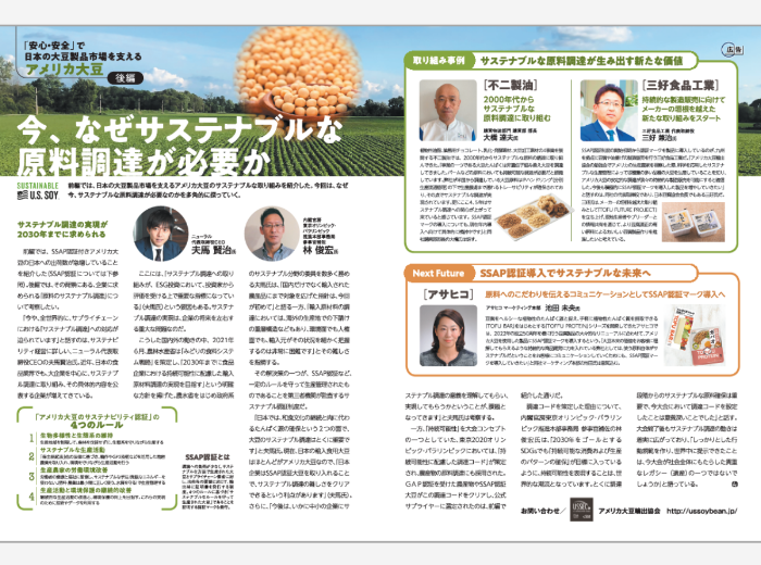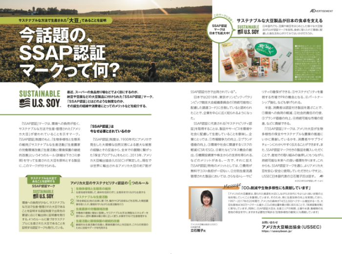 アメリカ大豆のサステナビリティ認証(SSAP)は、2018年、東京オリンピック・パラリンピックに続き、2025年日本国際博覧会(EXPO 2025)の持続可能性に配慮した調達基準をクリアしたことを受け、さらなる認知拡大を図ることにしました。